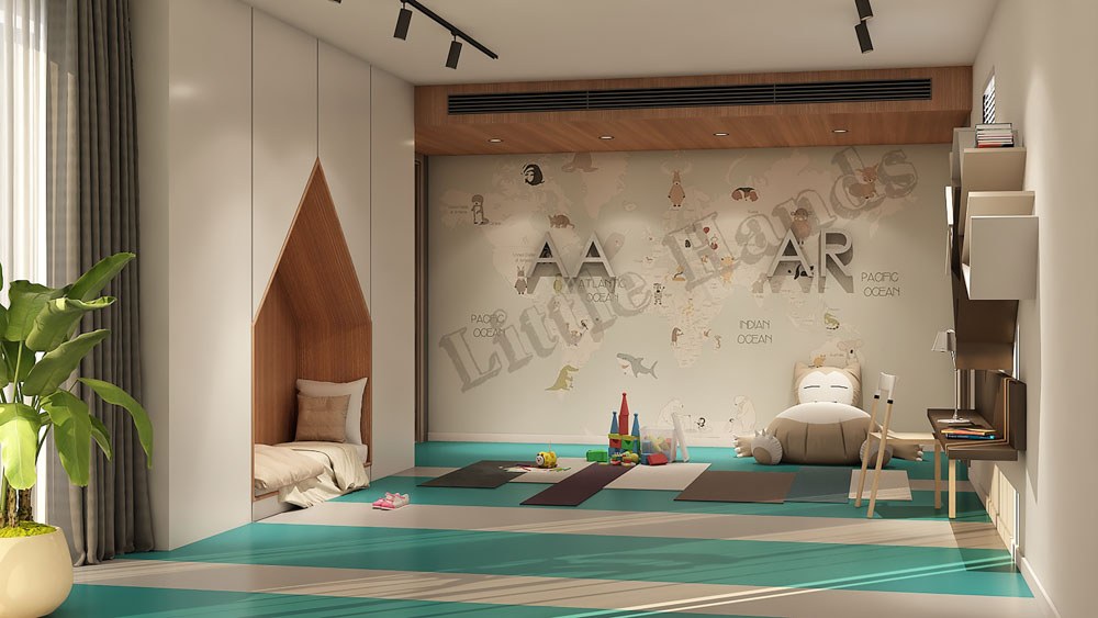 Bright Idea: As children grow and require far less open space for playtime, a recessed bed can be removed to make way for a study desk or a bookshelf or showcase with open shelving to display their artwork, little knick-knacks and simply give them a little room for their personality to shine. A more suitable single bed or twin beds depending on the children’s growing requirements can find space in the former playroom.