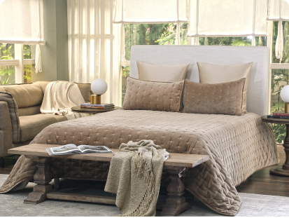 Our products, meticulously crafted from 100% pure cotton, offer up to 1000 thread count, ensuring balance of softness & durability. Explore our extensive range of 900+ unique Bedsheets, Bedspreads, Bedding Sets, Cushion Covers, and a special edit of Riwaaz.