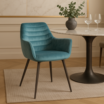 Opt for chairs with complementary colors or materials and a shared design element, such as a similar silhouette, for a harmonious style.