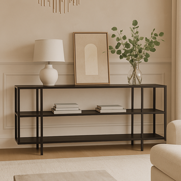 An open frame console table has a lightweight structure that brings a sleek, airy feel to your space. It’s ideal for minimal interiors, letting you showcase decor items or books without appearing bulky.