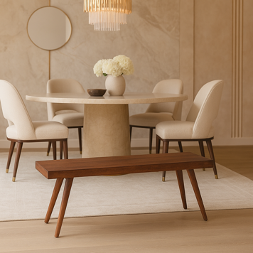 Classic yet versatile, wooden benches bring warmth and elegance to your space. Whether crafted from oak, walnut, or reclaimed wood, these options pair beautifully with most dining tables. They’re durable for everyday use.