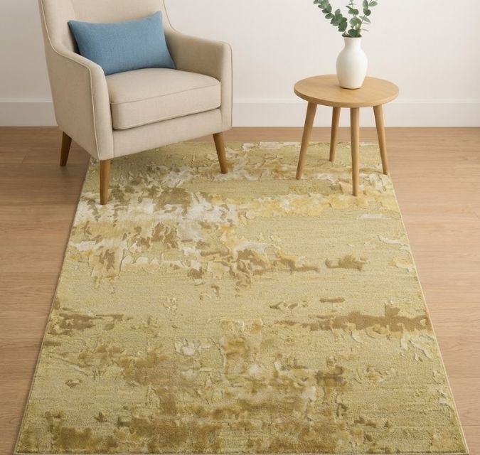 With the warmth of a desert sun and the vibrancy of a sunflower field, the KAIA rug exudes a creative depth that transcends the ordinary. A palette of turmeric, ashwood and honey brings a burst of light and colour into your home, effortlessly complementing any decor style. This is a Medium size rug with dimensions as follows: 6' 9 x 4' 9 ft.