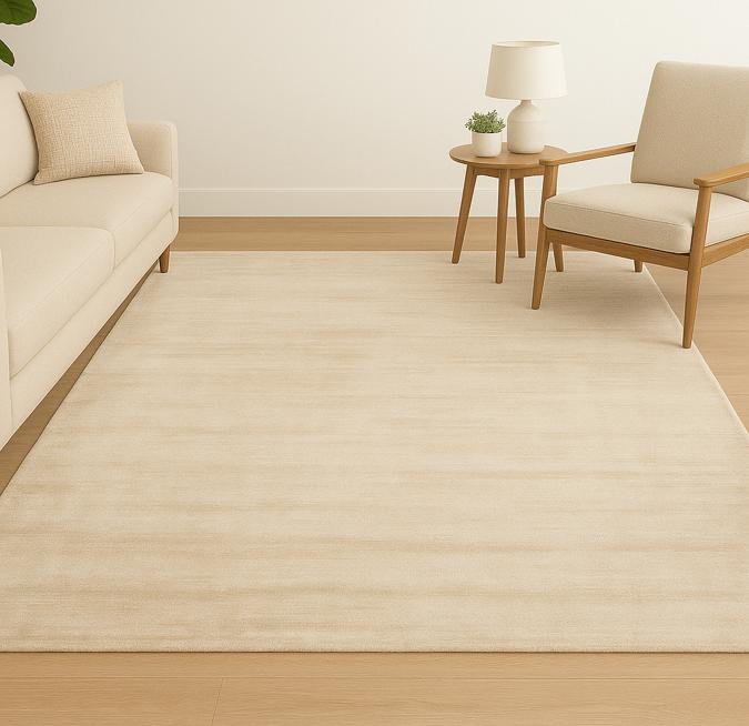 Bathed in a delicate beige hue, the REMINGTON rug oozes an understated charm, reminiscent of the earth's gentle embrace. With its subtle sheen and plush texture, let this delicate rug become the cornerstone of your décor, seamlessly blending with any style, whether modern, traditional, or eclectic. This is a Medium size rug with dimensions as follows: 6' 9 x 4' 9 ft.