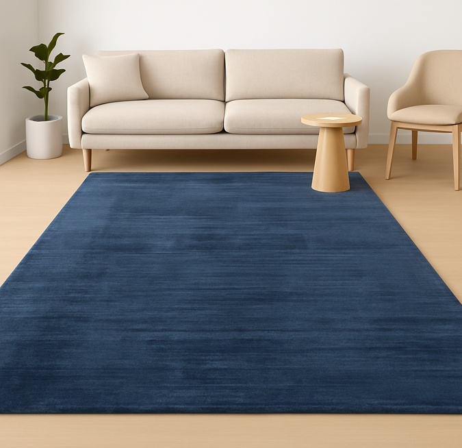 With the TRANSCENDENCE rug’s serene denim blue hue, elegance meets contemporary flair in the art of home decor. Hand loomed with precision and crafted with viscose, its vibrant colour breathes new life into any room, infusing your space with a spirit that is as refreshing as it is timeless. This is a Small size rug with dimensions as follows: 5' 4 x 3' 4 ft.