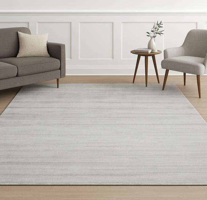 Like a serene morning mist, the lustrous grey TUNGSTEN rug drapes your floor and becomes the quiet hero of your home. As the anchor of your space, it seamlessly merges with your surroundings and serves as the perfect backdrop for your light furniture and decor. This is a Medium size rug with dimensions as follows: 6' 9 x 4' 9 ft.