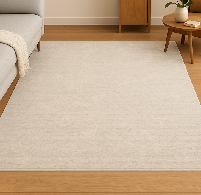 Crafted from the fabric of moonlight, the CHALK rug draped in the creamy embrace of celestial white bathes the room in an aura of grace, inviting the imagination to wander and painting stories of delight upon its pristine surface. This is a Large size rug with dimensions as follows: 9' x 6' ft.
