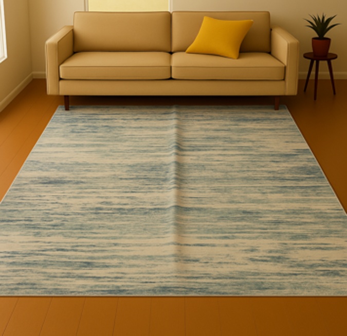 Like the gentle caress of a sea breeze on a summer's day, the OASIS rug captures the waves of cerulean and ivory, where every curve mirrors the flow of life and embarks on a journey of relaxation and rejuvenation. This is a Medium size rug with dimensions as follows: 8' x 5' 2 ft.