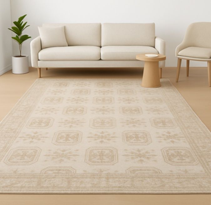 In hues of warm earthy browns, the VARG rug sits as a humble sentinel, embracing the essence of neutrality with grace and minimalism with grandeur. Its traditional square pattern echoes as a tribute to heritage and tradition. This is a Medium size rug with dimensions as follows: 7' x 5' 2 ft.