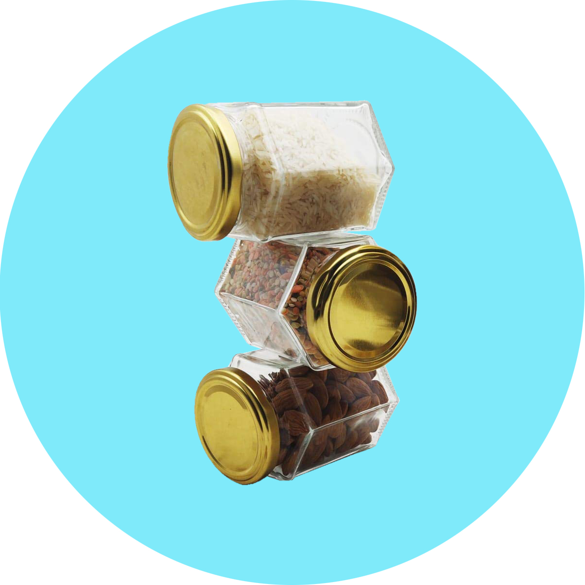 Product: Satyam Kraft Hexagon Glass Jar and container with Golden Lid