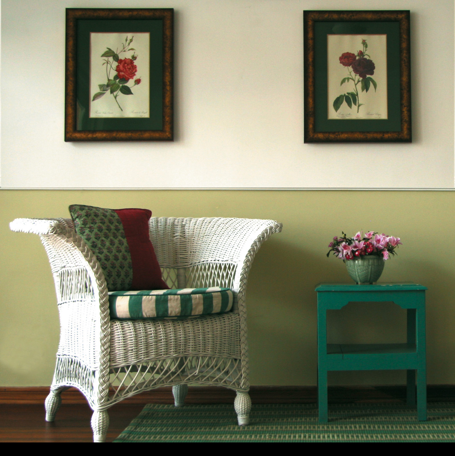 Flowers can brighten up a room with little effort, though plants are a more sustainable option. Find ones that are good indoor choices and use vividly coloured planters with floor protectors.