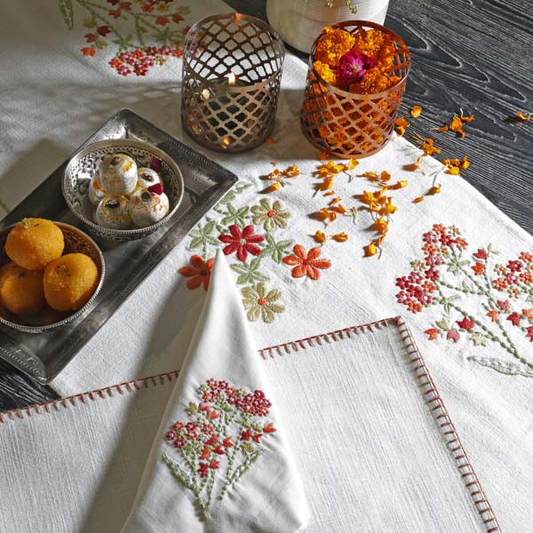 Availability: Most of the table linen is available at Sarita Handa stores in Mumbai and New Delhi; the flagship store in Sultanpur, New Delhi has the entire collection at all times.