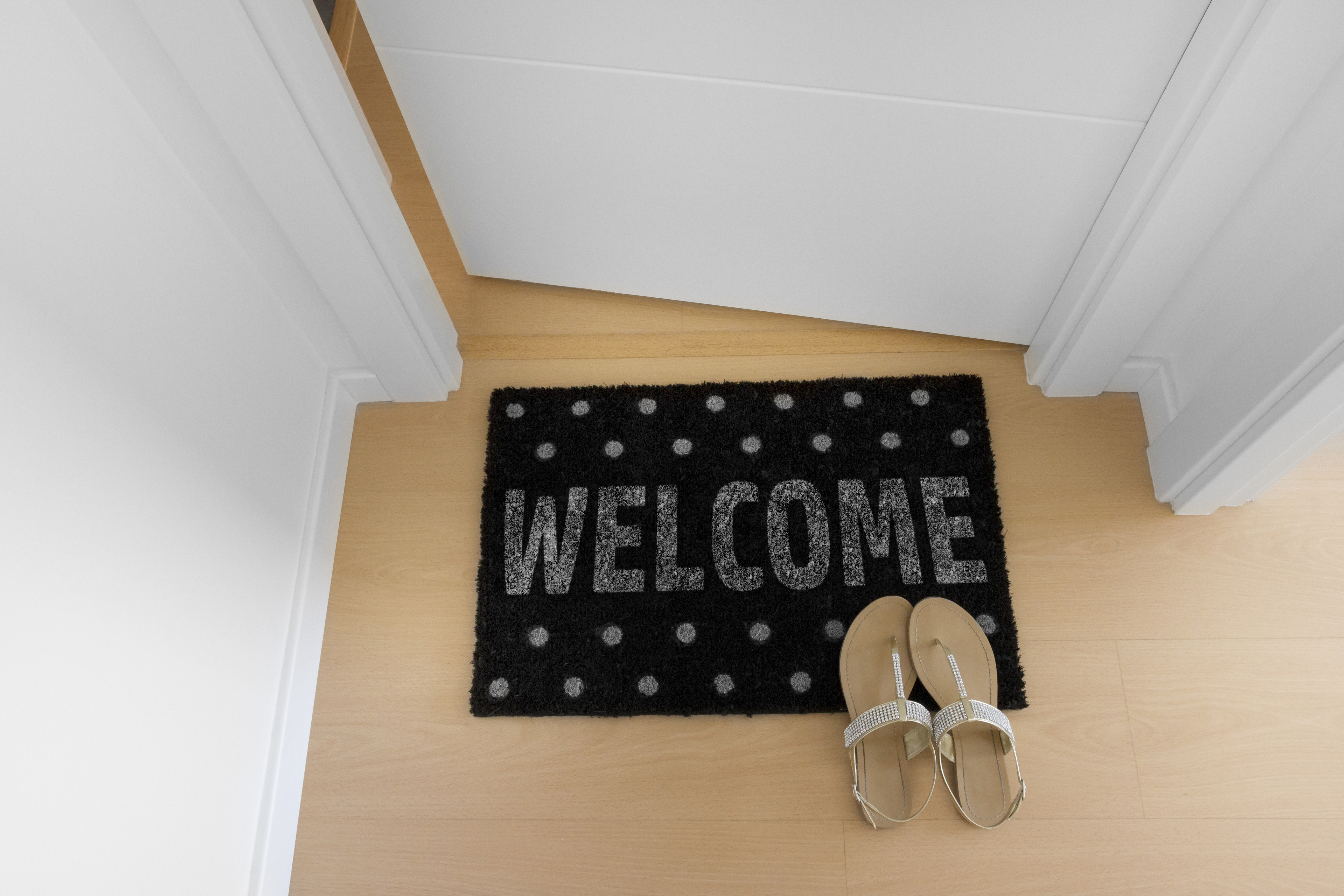 Shoes carry in dust and dirt from outside. Place a heavy duty welcome mat outside your door and encourage guests to use it before coming in. Place a small rug or runner in the entryway as well to be extra careful.