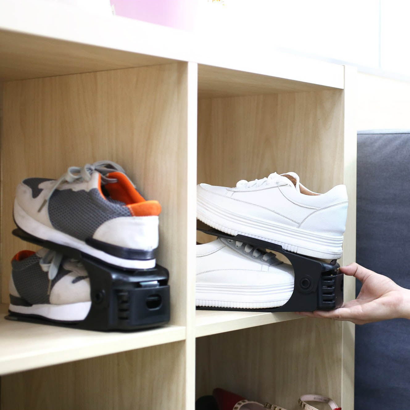 Free up cabinet space with these specialised shoe organisers that let you stack pairs one on top of the other—so you no longer have to worry about separated pairs or missing shoes at the last minute.