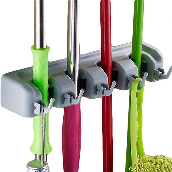 A mop and broom holder should be an essential in every household—especially if you don’t have space for a designated broom closet.