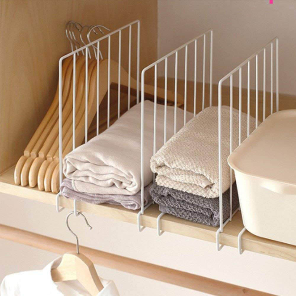 Wardrobe shelves are notorious for the mess they can cause, with piles of clothes and accessories falling over one another—but these shelf dividers are an instant fix.