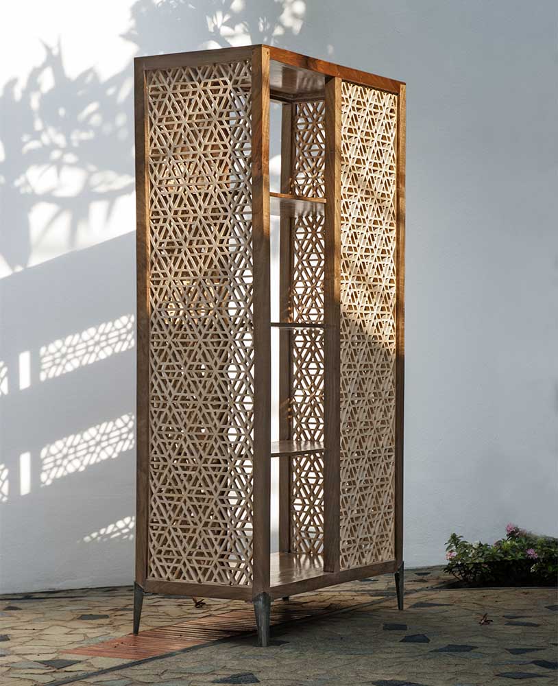 The craft of lattice work, locally known as Pinjrakari in Kashmir is based on intricate patterns. This is another multitasker on our list; it does the job of a bookshelf, or if it’s placed in the middle of a room, library style, then it divides the room.