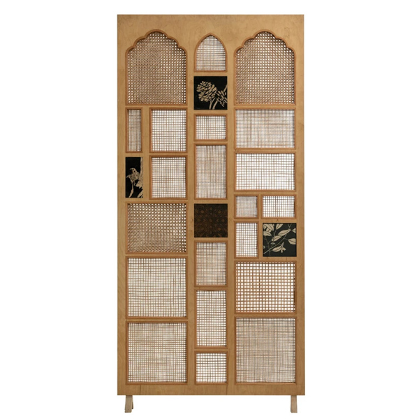 We spotted this one at our recent visit to India Design ID 2020. This room divider is made of ‘rattan cane’, a material that is known to be lightweight, durable and flexible in some parameters. Due to these qualities it allows you to easily move this rather big piece around as per your liking. It can also be added to your décor as a statement piece considering it has quite a unique silhouette.
