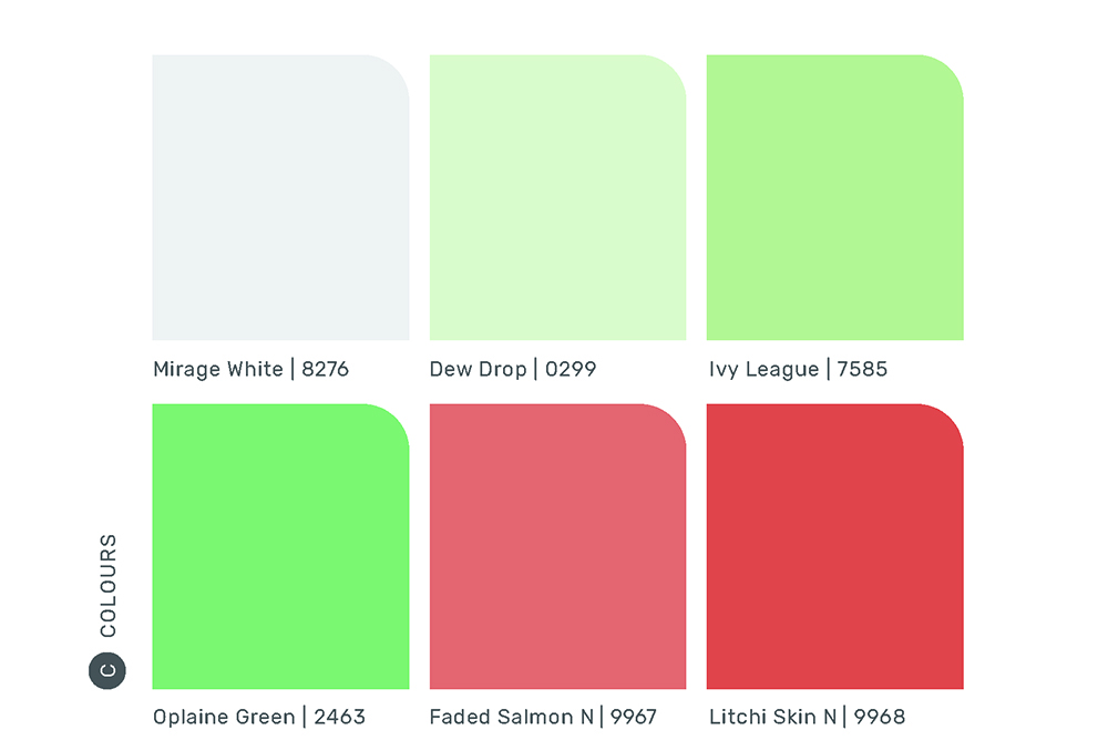 A. Potent: It translates into a colour story that is pure, clean and complete with a monotone palette and pops of contrast, including hues of green and coral in varying saturations.