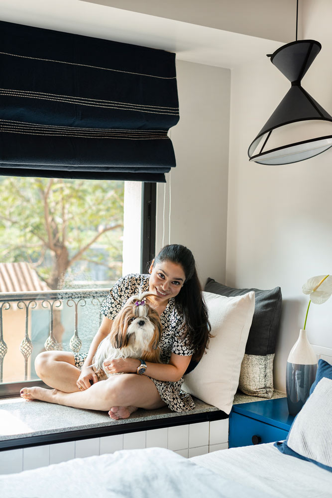 A few years later when she decided to make the home her own, she began by trawling social media for references. Between cute dog videos and plant pictures, Sumona’s browsing history is full of interiors inspiration. And that is how she was introduced to the work of the Mumbai-based design studio, MuseLAB. “I saw their work and stalked them, and then slid into their DMs,” she laughs. “They were the only ones who offered to work backwards from my budget, and I really appreciated that.” Her brief to the designers Huzefa Rangwala and Jasem Pirani was simple: ‘break everything down’. “I knew I wanted to build something exactly to my liking. This is a small house, and I didn’t want too many walls.”