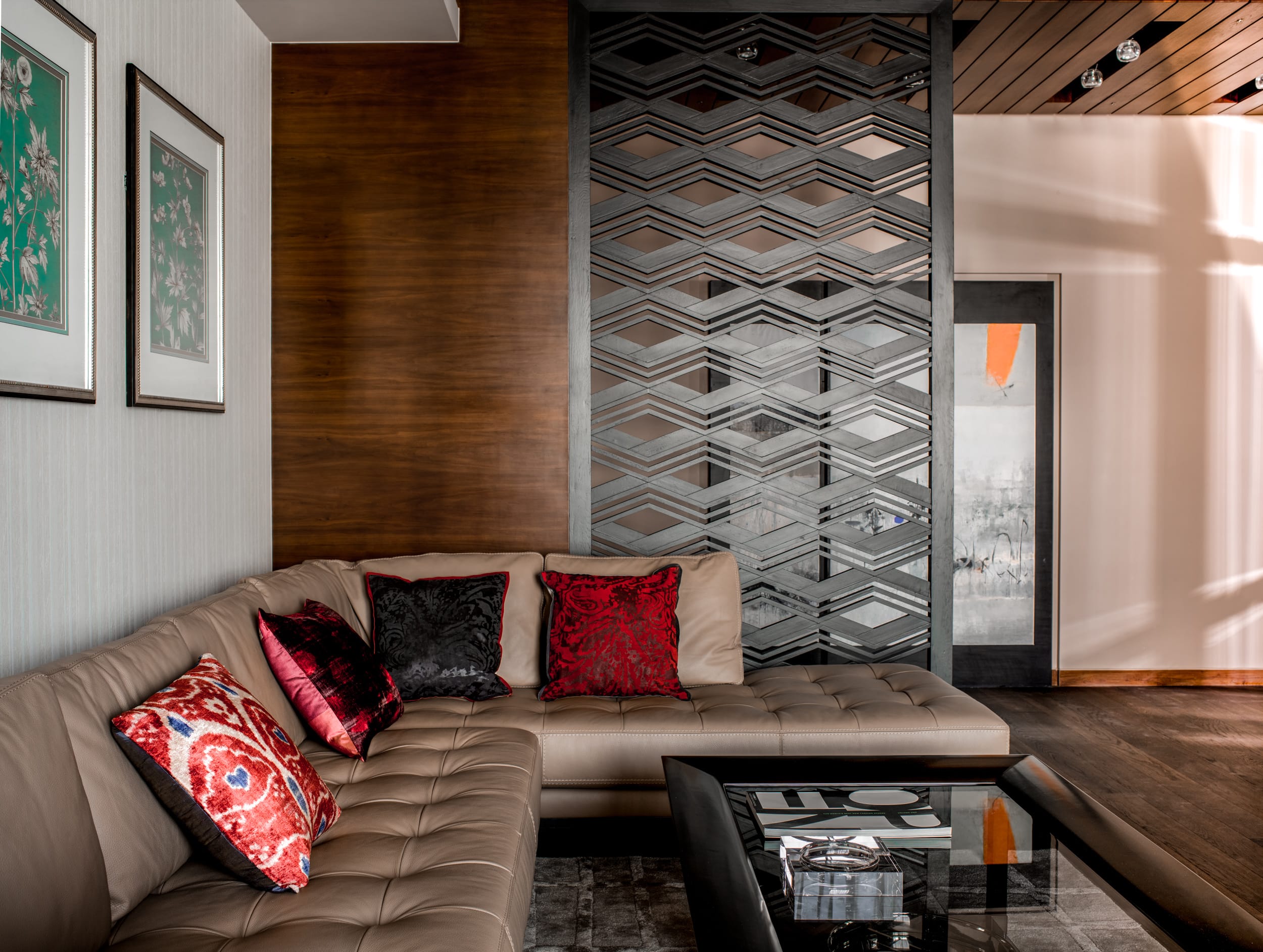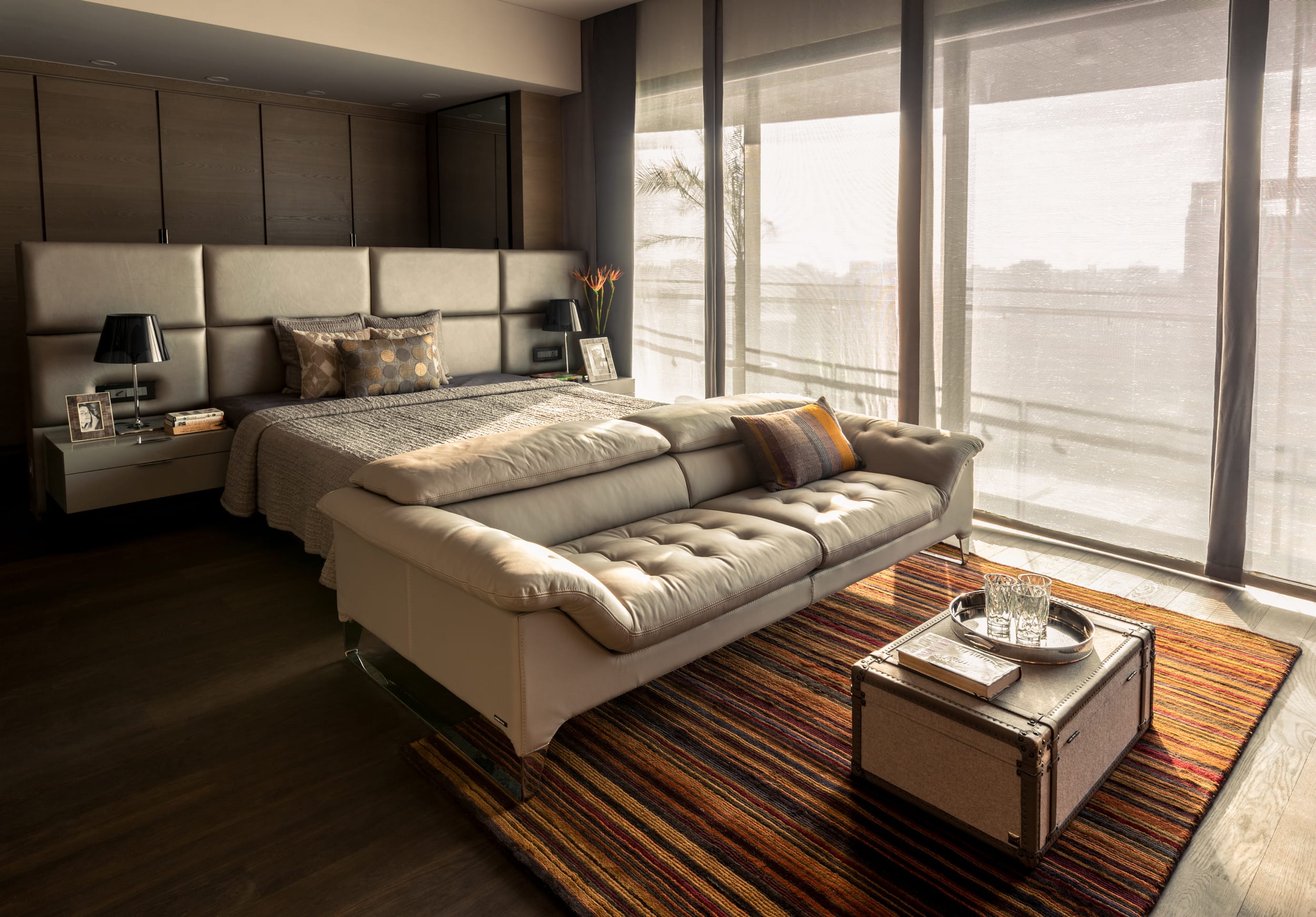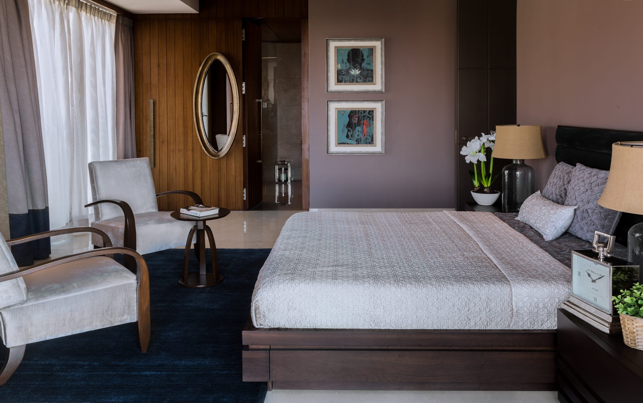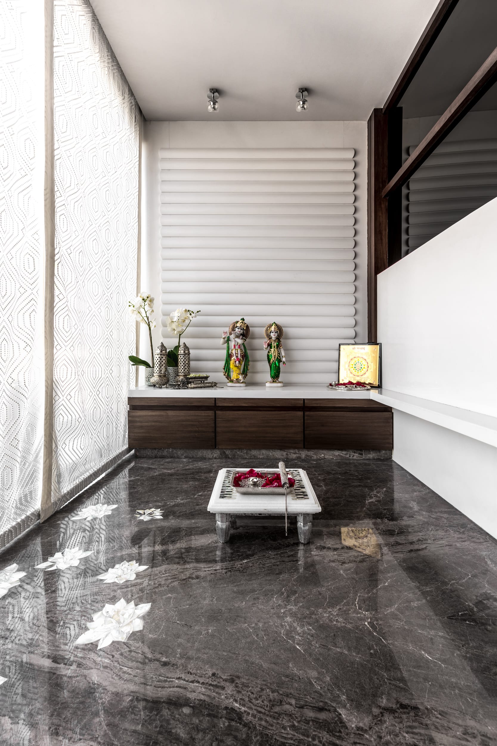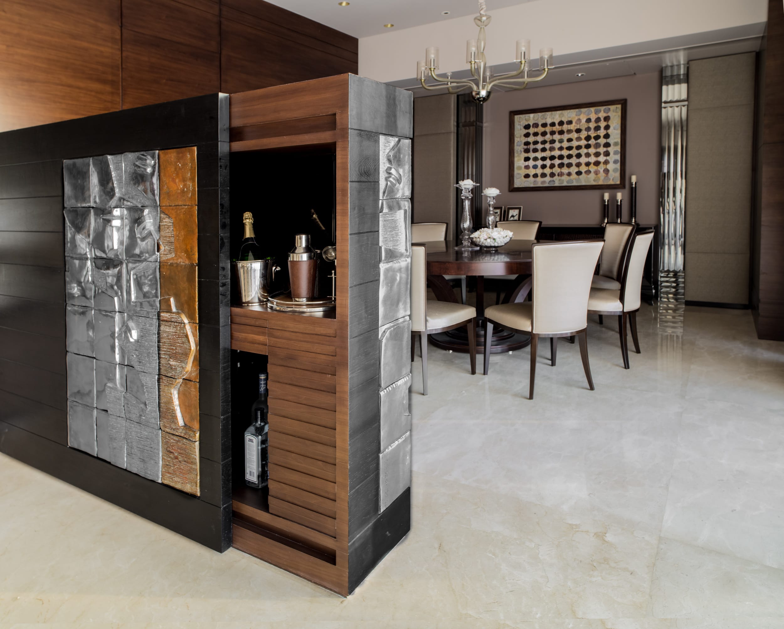 Designed by Rakeshh Jeswaani of RJIA for a couple and their two sons, by Rakeshh Jeswaani of RJIA, it straddles the fine line between luxury and elegance without giving in to the temptation of going over the top. The design includes various uses of wood — from flooring and wall panelling to a striking room divider. This lends a certain earthiness to the space, ensuring that the glitz is kept in check.
