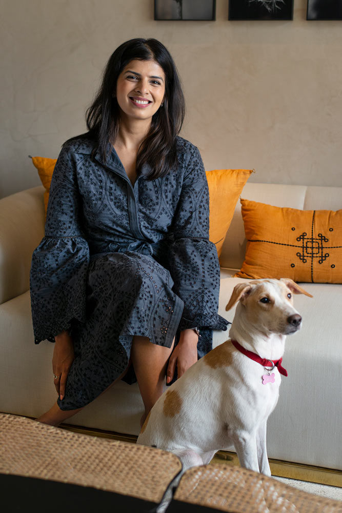 The overall aesthetic of the home is clean and minimal, with pops of colour in each room, and pattern and texture through fabrics, flooring, and furniture. And of course, both client and executor being from design and decor firms, Bharat Floorings cement tiles and Essajee’s furniture have been incorporated into the space.