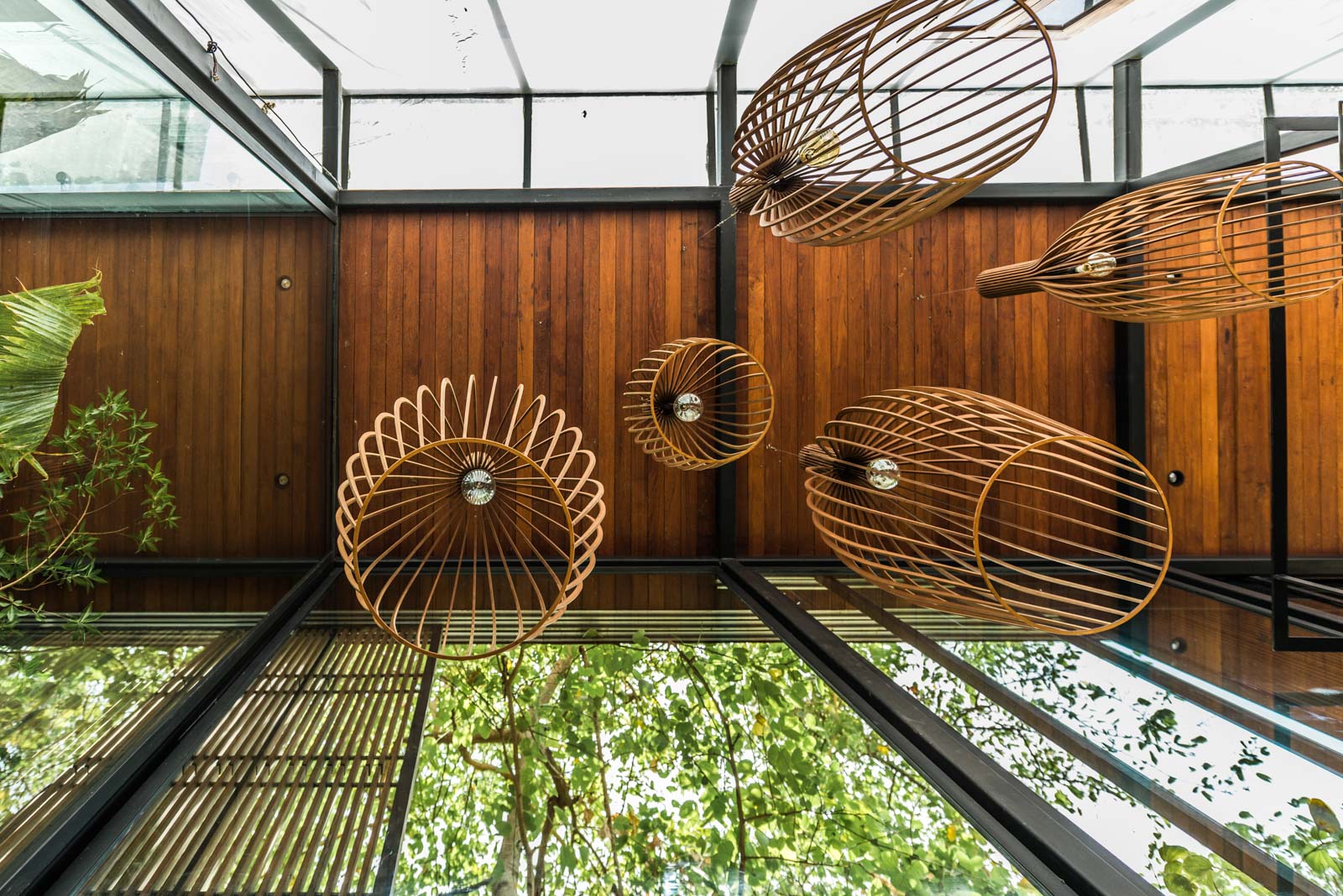 To bridge the gap between a home and its adjacent garden, Ahmedabad-based Vastushilpa Consultants’ Sönke Hoof created an all-glass enclosure by elevating simple materials as tools for high design and layering man-made spaces with nature