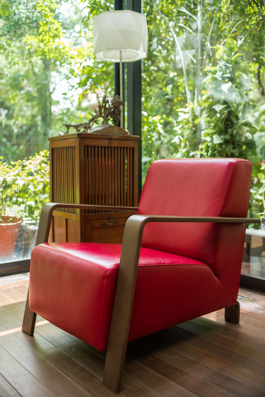 Things weren’t always like this. “When we built the house [in 2000], where the extension now stands was the limit of our land; at the time, we did not have the garden,” explains Sameer about the plot of green now abutting the house. When, they did get the garden, “we started using this space as a verandah”. That was the good part. The downside was that it could not be used eight months of the year. It would get too hot during the summers, and in the rains, “water used to enter nearly half the way into the [old] verandah,” recalls Hemangini. That disconnection, with the garden just outside, was distressing enough that they decided to do something about it. Cannily, the Sinhas left the doing to experts—and handed over the matter to an architect capable of giving texture and form and shape to their vision, “of creating a light utilitarian space that would blend into the garden”. Sönke Hoof, a partner at the Balkrishna Doshi-founded Vastushilpa Consultants, was precisely equipped to see this nebulous brief through to its end, and achieve this unseasonable “tropical paradise”.