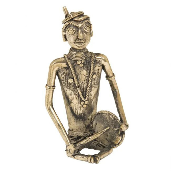Dhokra is a metal craft with a history of over 5,000 years. The metal figurines are made using the lost wax casting process and the craftsmen use bronze and copper-based alloys in their creations. The human and animal statues that have a thin and delicate shape are characteristic of the art form. The craft is entirely done by hand which lends it an element of imperfection and also adds to its organic and rustic charm.
