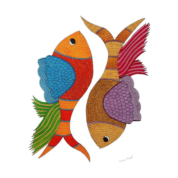 The Gond tribe creates this famed art form often referred to as "on line work" on the walls of their homes which today is sought after worldwide. Using stories from legends and myths as inspiration, Gond art is characterised by neatly drawn lines, dashes and dots as well as the use of bright colours like yellow, red, white and blue.