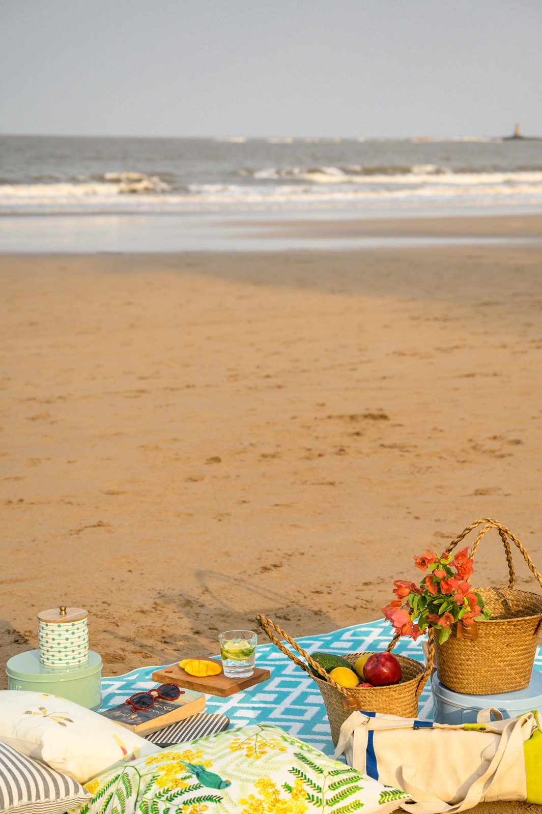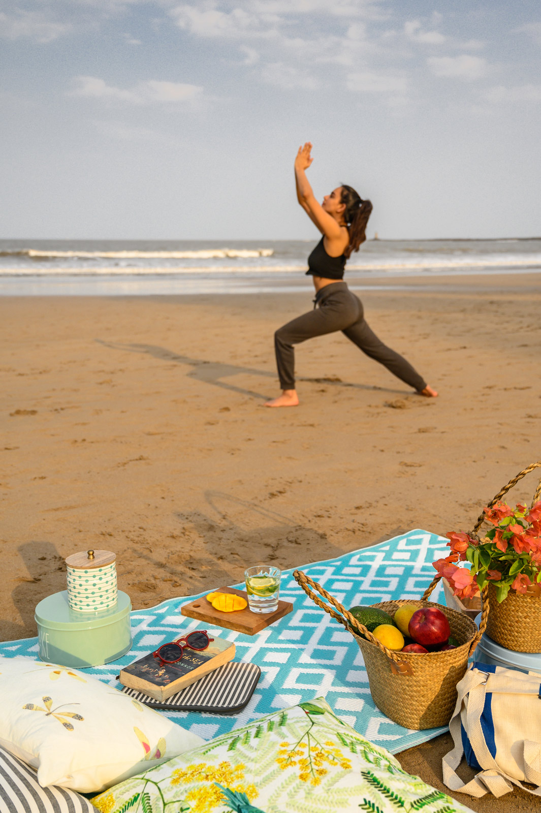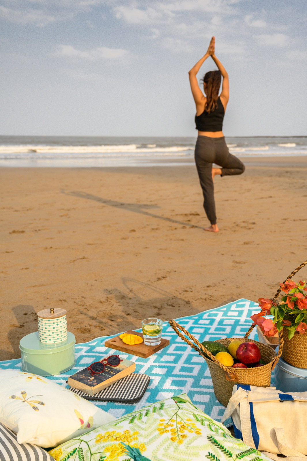 Don the yoga pants, stretch your imagination, meditate on life, and watch the ebb and flow of waves—but do it all in style. Here’s what you need to pack for a quiet picnic by the sea