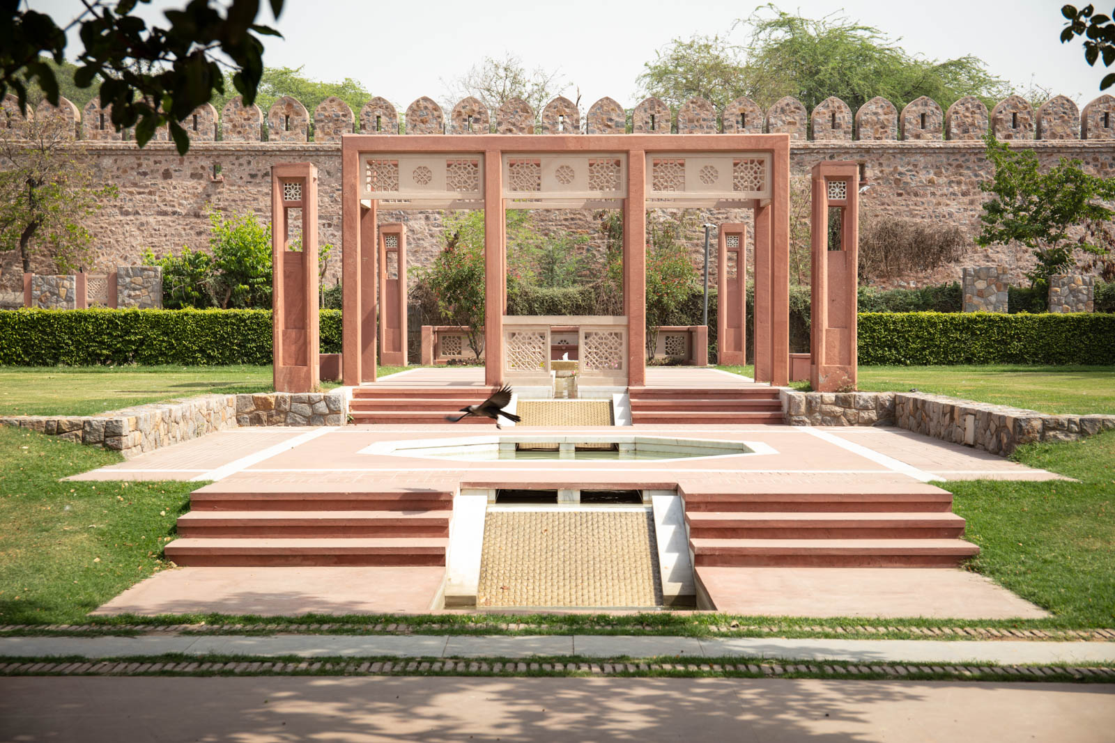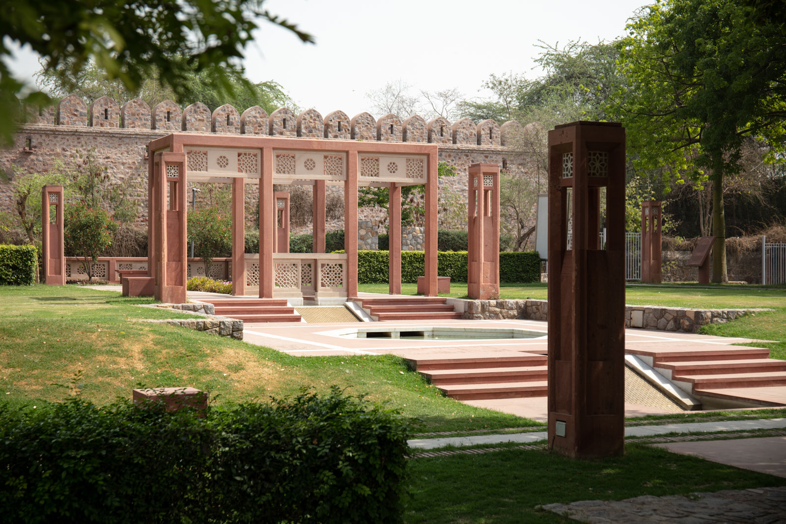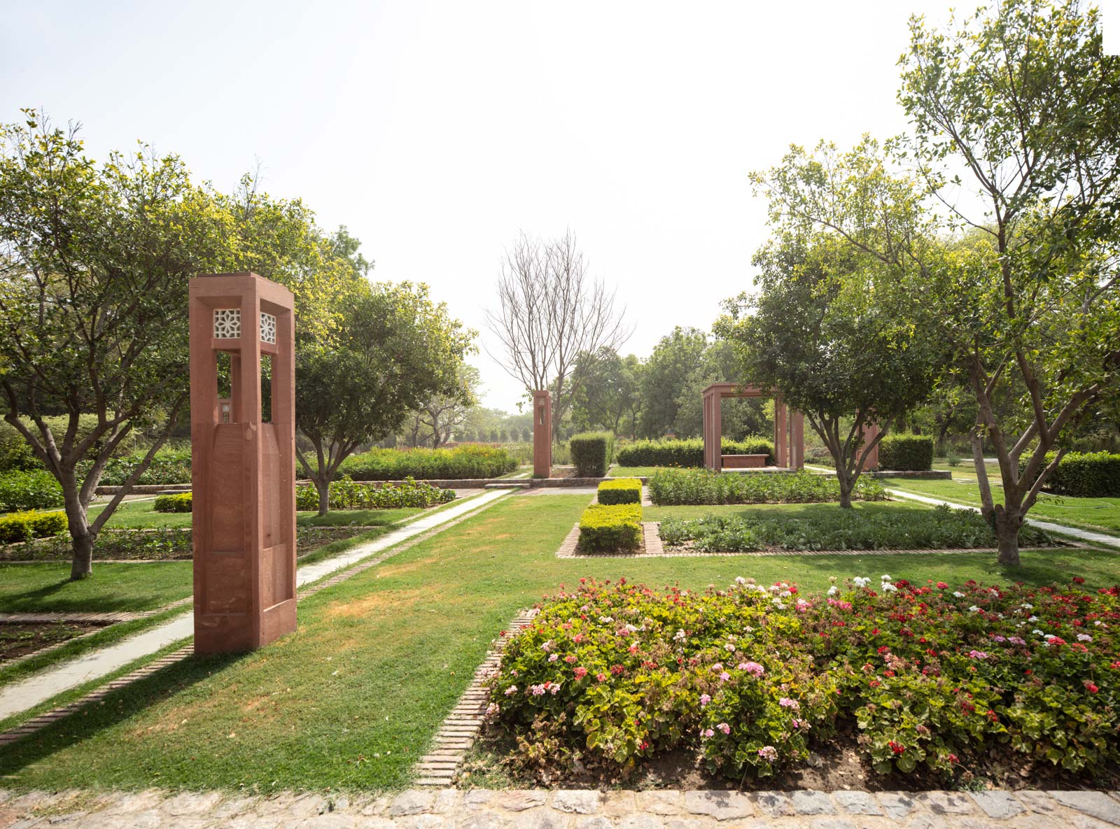 The challenges to restore a dumping ground into a green lung were, as expected, plenty. Lying abandoned for decades, much of the area had overgrown. During the initial work, the accumulated rubble required some 1,000 trucks to be removed before the ground was levelled and subsequently recreated. Neglected tomb structures dating back to the 16th century, such as the Lakkarwala Burj (which now houses the rose garden), Sundar Burj, Batashewala Complex (which houses the tomb of Mirza Muzaffar Hussain, grand-nephew of Emperor Humayun and son-in-law of Emperor Akbar), among several others, were restored following exhaustive architectural documentation, including archival photos and condition-assessment reports. The ornamentation on the internal wall surfaces were cleaned to expose original details and missing incised plasterwork was reconstructed following the original pattern. The sandstone lattice-screen openings were restored, and master craftsmen, many of them still living in Nizamuddin Basti, restored the Quranic inscriptions. Traditional material was used, including lime plaster that was prepared in the traditional manner with additives such as jaggery, lentils, egg whites, pulp of the bael fruit, to ensure long-term preservation of these monuments.