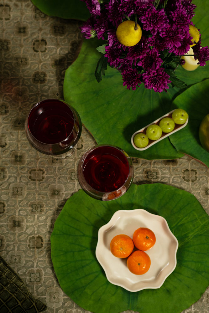 A quick trip to the flower market will sort you out for the evening. Guest stylist, art director and fantasy botanicals creator Priyanka Shah of Studio Lalala in Mumbai is our favourite when it comes to odd couplings of table settings. In December she created a series of Christmas-inspired and seasonal settings for beautifulhomes.com, which you can see here.