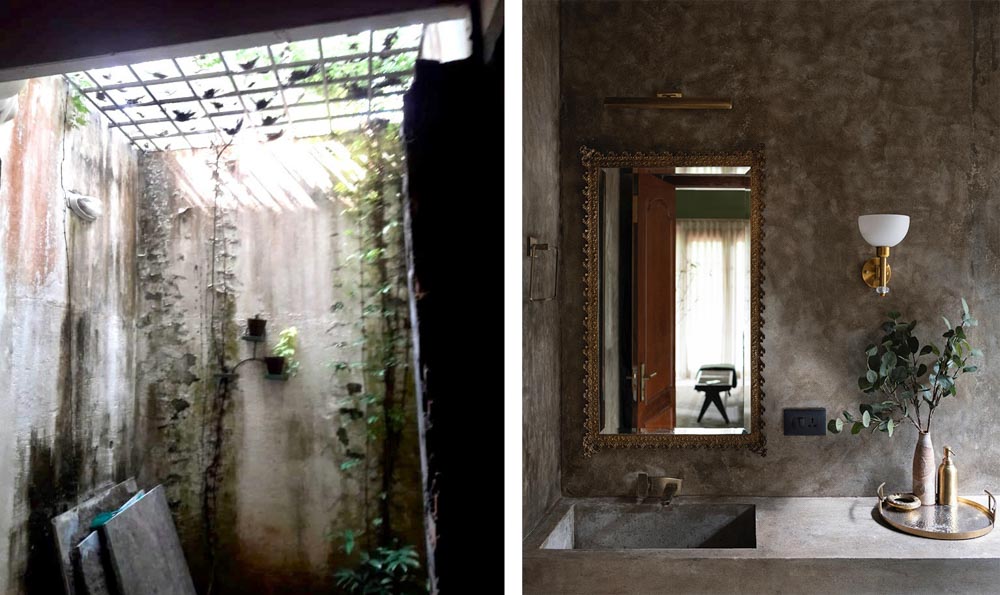This house based in Kozhikode, Kerala had lush tropical surroundings, which had been echoed in the décor through the home. Architects Arun Shekar Gowda and Mohammed Afnan (co-founders of Humming Tree) took over renovating an untouched bedroom in the home, which had this adjoining bathroom space.