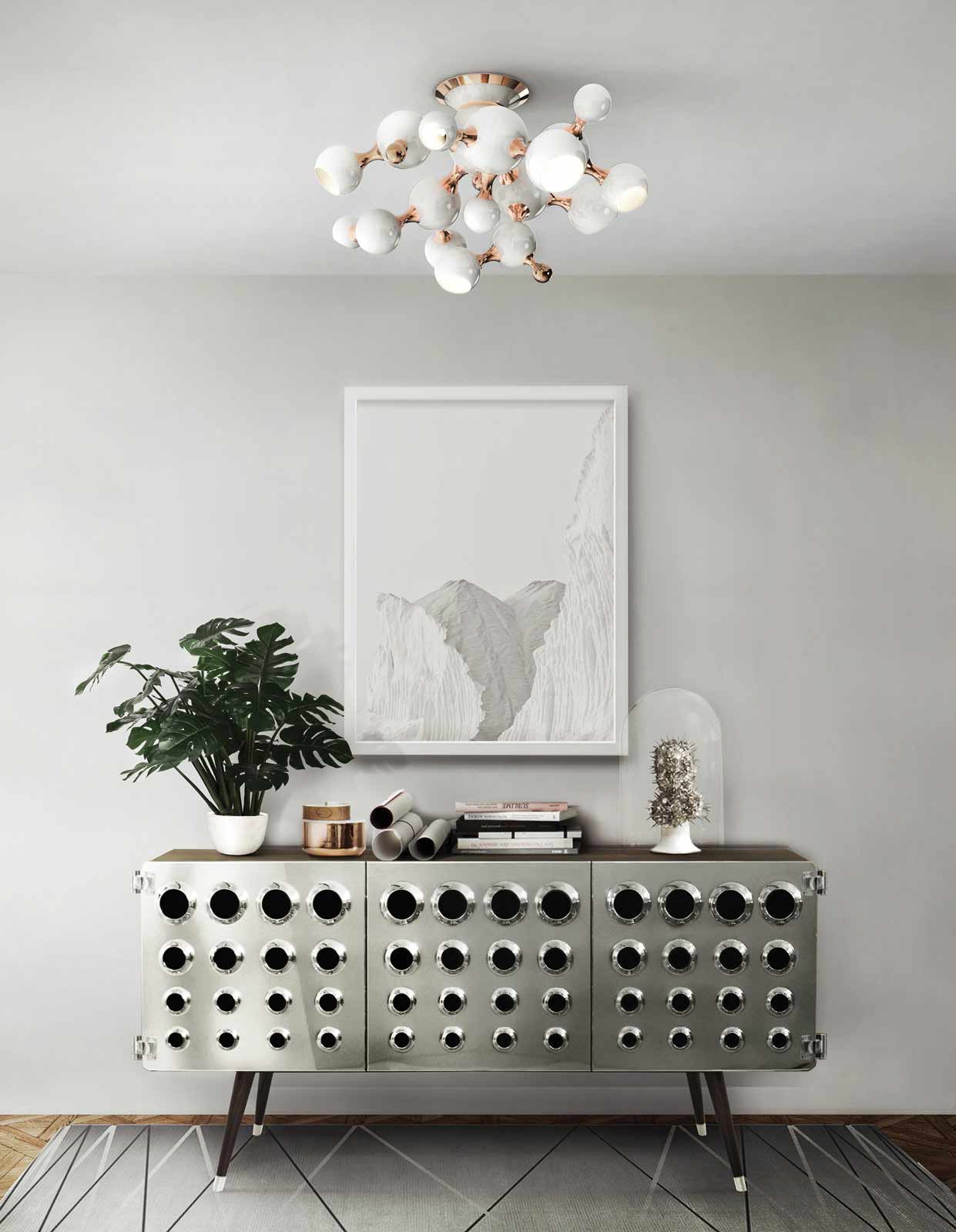 Bring in points of visual interest thorough artefacts, mirrors, photo frames, or console knobs. In order to maintain cohesion with the furniture, pick accents with a metal finish.